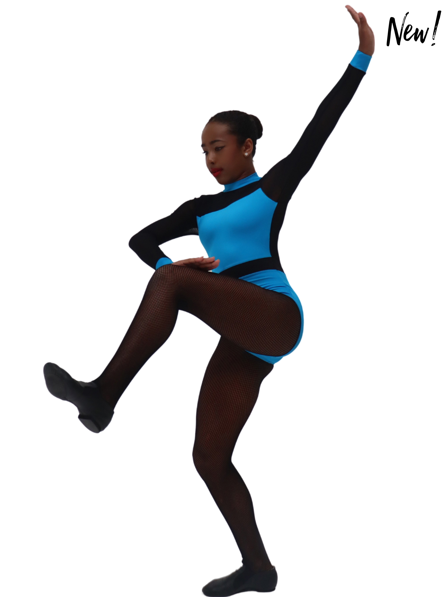 Clever colour blocking and a full mesh backline with large open keyhole creates a striking vision of red or blue and black. Stylish long sleeves with contrast cuffs and classy leg line complete the look. The sleeveless boy shirt called Cube matches this design. This costume comes fully lined.