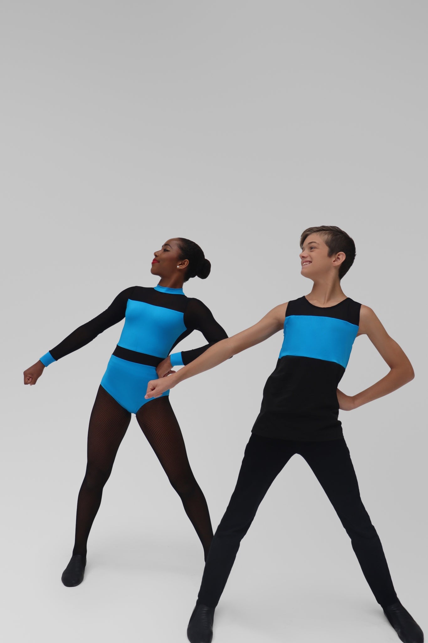 A simple sleeveless lycra tank, spliced with a red or ocean panel to match the costume Block.